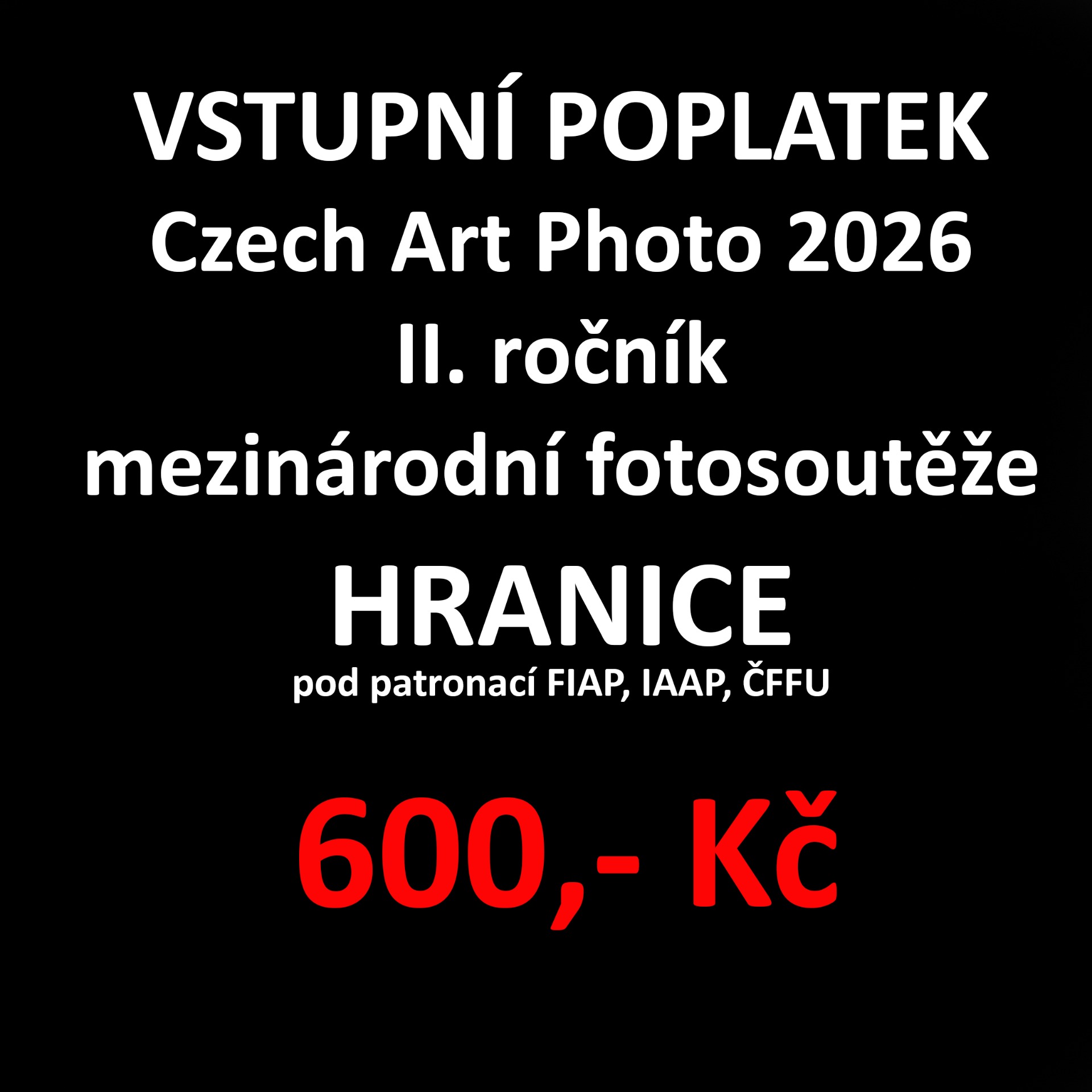 Vstupní poplatek fotosoutěže II. ročníku Mezinárodní fotografické soutěže pod patronací FIAP, IAAP, ČFFU - HRANICE 2026